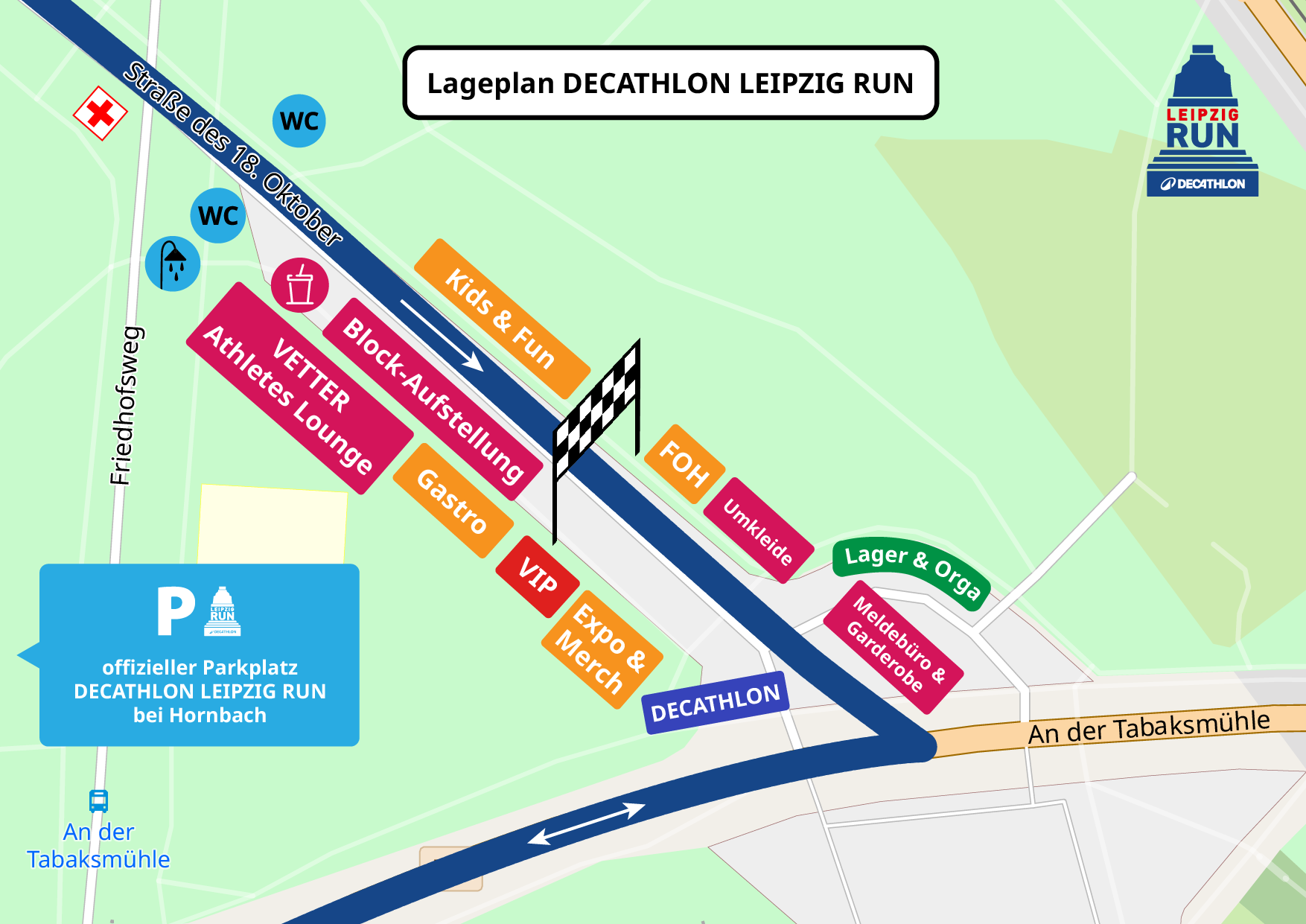Der offizielle Parkplatz für den DECATHLON LEIPZIG RUN ist beim HORNBACH Leipzig – Alte Messe,